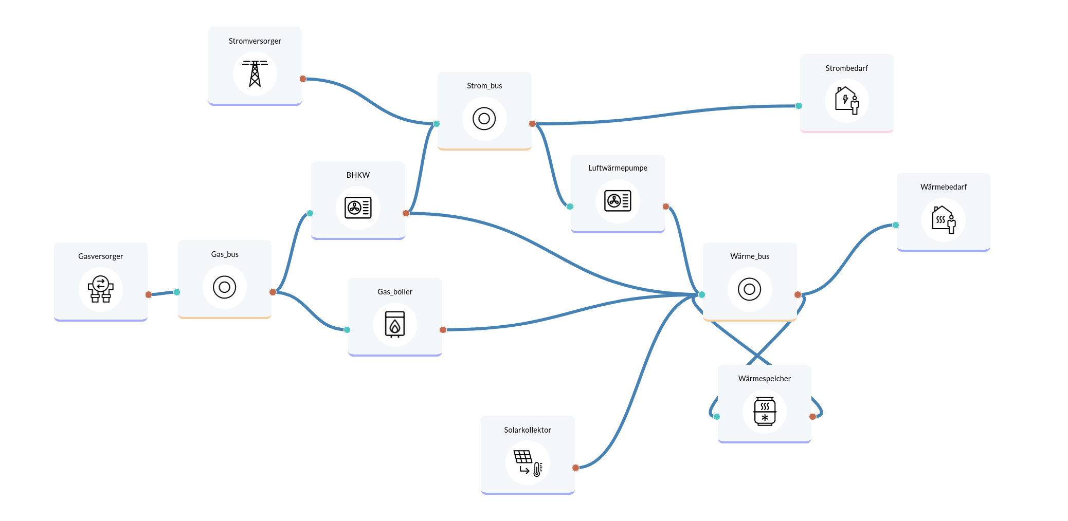 Optimization of an apartment building (approx. 20 apartments) near Konstanz with the following data: 70,000 kWh/year electricity consumption BDEW H0 profile 286,000 kWh/year heat consumption (heating + hot water) modeled by outdoor temperature according to BDEW. Weather data from German weather service for Constance 2018. Cost data for components largely from Danish technology catalog. Lifetime: 20 years