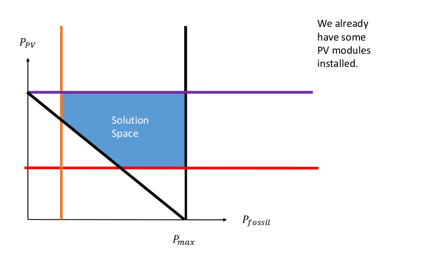 In our example, we assume that a small fossil fuel generator has already been installed, and consequently, the solution space is reduced, as shown in the picture.