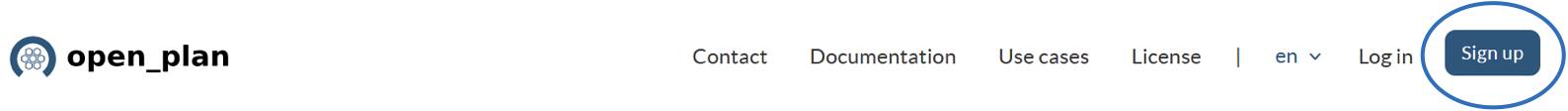 The first step to start using open-plan-tool is to create an account. To do this, you must click on the “Sign up” button at the top right corner and fill in the following information: your name, email address, username and password. Finally, do not forget to read and accept the privacy statement. You should receive an email with a link to confirm the account creation. You can find our privacy policy here.