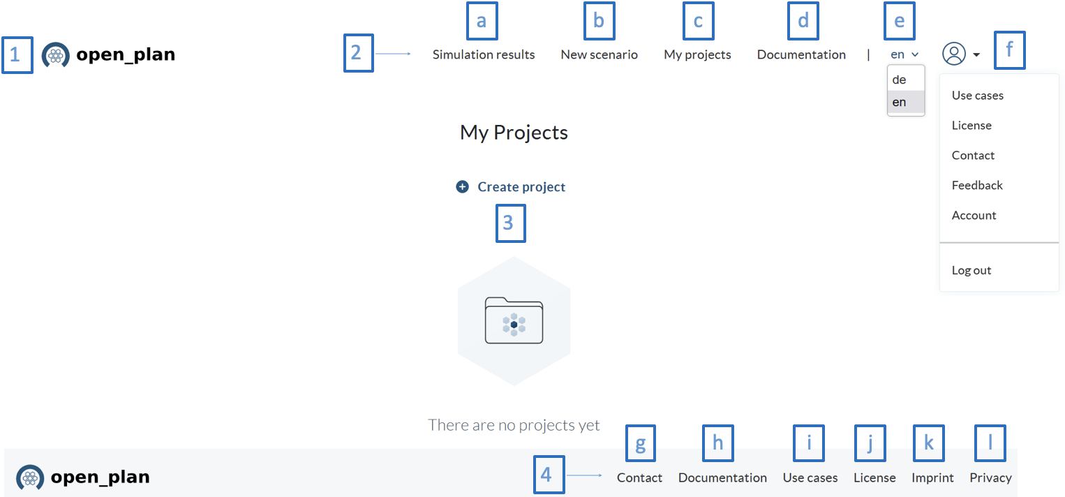 1. Logo. Clicking here will take you back to the home screen and your projects. Here you find all the projects you have created, and you can create new projects.