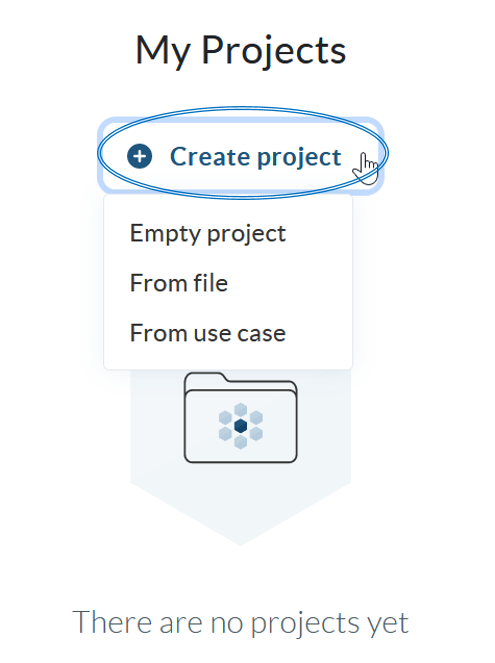 If you want to start from one of the configured use cases, you can do so in this option. You will see a pop-up window with a link to the use cases, and a drop-down list where you can choose the use case to use. Once selected, it will appear in the “My projects” section.