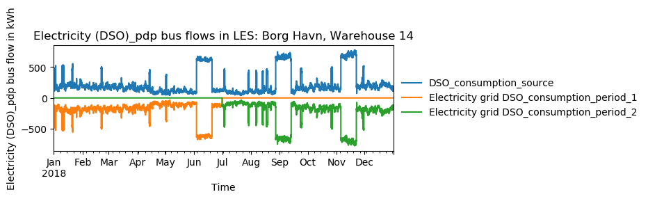 To represent the peak demand pricing, the open-plan-tool adds a “transformer” that is optimized with specific operation and maintenance costs per year equal to the PEAK_DEMAND_PRICING for each of the pricing periods. For two peak demand pricing periods, the resulting dispatch could look as following: